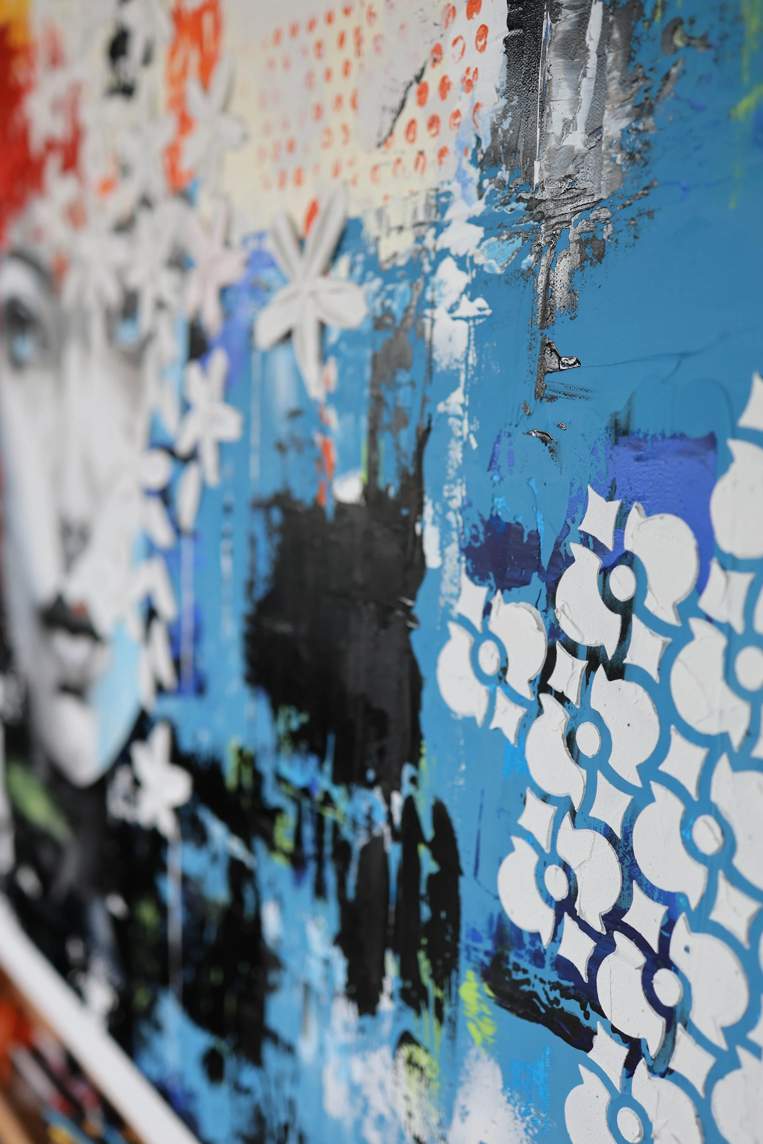 I especially love creating commissioned work because it pushes me to think differently. Each piece becomes a collaboration, an opportunity to step outside the box and translate a client’s vision into something tactile, layered, and deeply personal. For me, painting has always been about curiosity, and that curiosity still leads the way