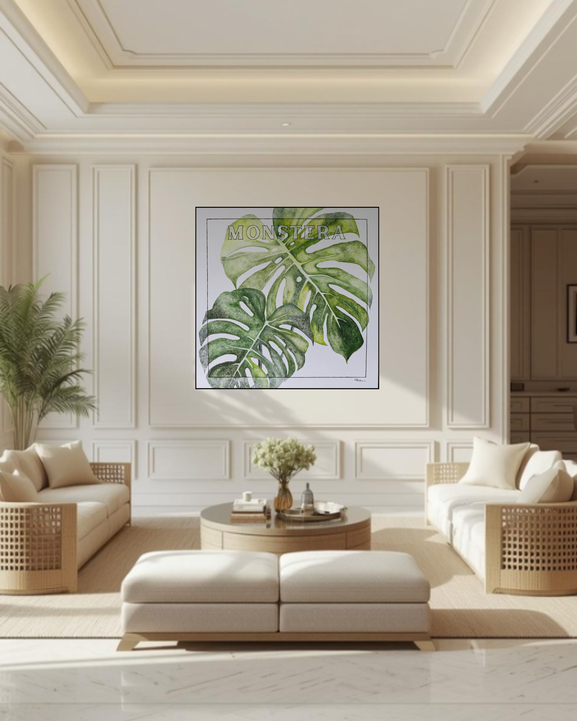 A tribute to the regal beauty of nature, the Monstera is a true botanical icon. Its sweeping curves, rich gradients, and luminous greens capture the plant’s majestic presence—bold, dramatic, and effortlessly elegant. Designed to elevate any room, this artwork brings a sense of organic grandeur to modern luxury interiors. Part of the Tropical Series of Richer Art Collection, it celebrates nature not just as décor, but as a statement of power.